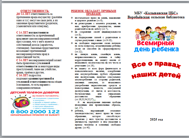 Уважаемые читатели! 20 ноября отмечается Всемирный день ребёнка. Представляем вашему вниманию информационный буклет "Всё о правах наших детей"